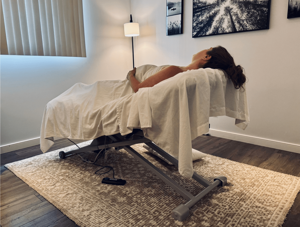 To ensure comfort and accessibility, our treatment rooms are equipped with hydraulic lift and tilt tables, allowing us to customize positioning for maximum comfort. We also offer a variety of bolstering options, including a specialized pregnancy bolster that allows expectant clients to lie face down comfortably and safely during treatment.